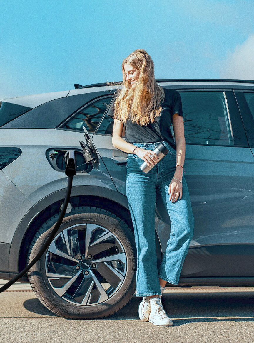 Verbinde das Ladekabel mit deinem Fahrzeug.